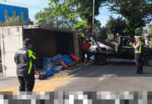 Sopir Ngantuk di Malang Sebabkan Truk Oleng dan Terbalik Menabrak Median Jalan